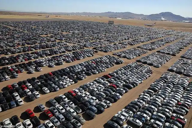 大众花了74亿美元回购了35万辆汽车,存放在加州沙漠,成为壮观的“汽车墓地”。
