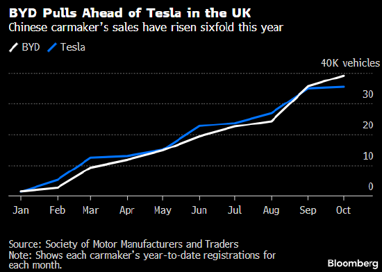 随着比亚迪今年以来的迅速崛起,英国已成为其在中国以外的最大市场。与此同时,特斯拉在欧洲遭遇重创,既因竞争加剧,也因马斯克所遭到的舆论反弹。