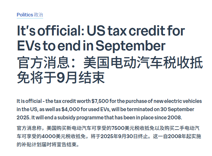 这些市场下滑的原因也挺复杂,比如美国市场,7500美元的联邦电动车税收抵免在9月30日终止,想买车的人全集中在第三季度抢购了,11月份销量直接下降23%。