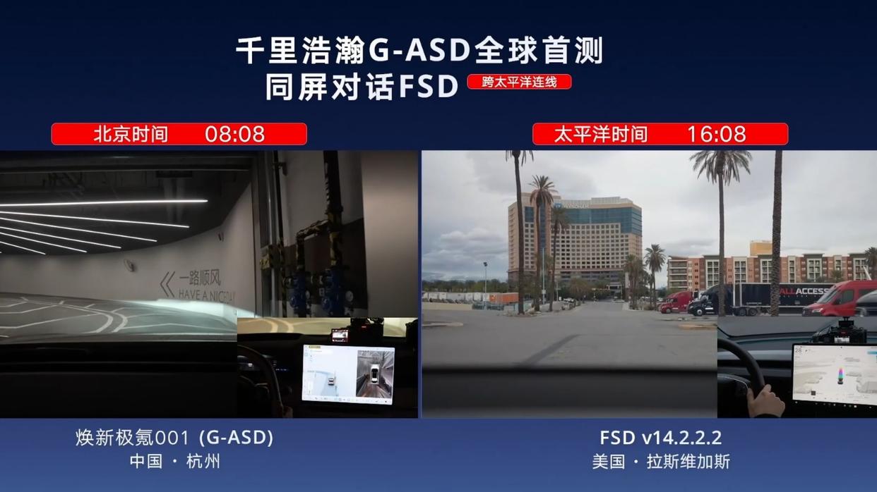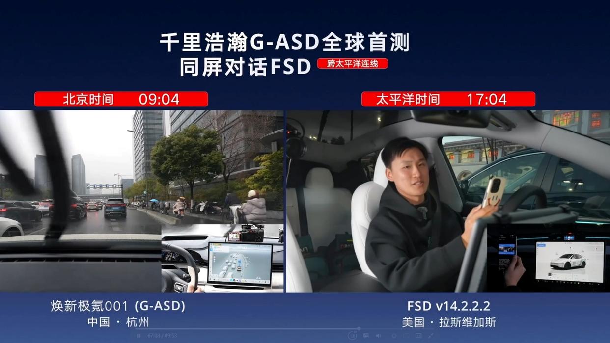 所谓关公战秦琼,是吉利在2026 CES上最新发布的G-ASD在中国的早高峰里,同频挑战特斯拉最新的FSD V14.2挑战美国早高峰。横跨太平洋的这场技术PK,自然是无法回答它们谁更强的问题。