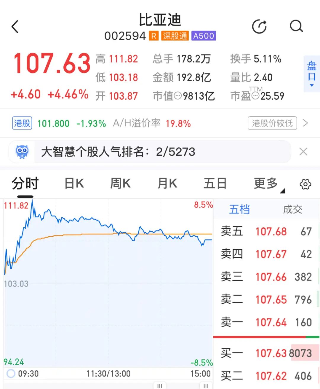 3月23日,比亚迪股价表现亮眼。截至收盘,比亚迪A股上涨4.46%,报收于107.63元。比亚迪近期利好消息不断,在本月发布第二代刀片电池与闪充技术后,比亚迪被传将于4月召开智能化发布会,新技术指向智能驾驶的核心竞争区域。比亚迪有关负责人近日还透露,公司在固态电池赛道上坚持投入,目前在研发突破、产品成熟度及产线布局上都走在全球前列。