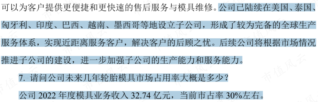 尤其是随着新能源车市场的快速发展,由轮胎质量、性能、外观升级带动的模具需求也在增加,这样公司轮胎模具业务面临的需求环境应该是缓慢增长的。