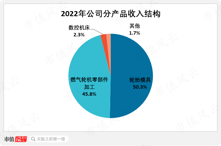2022年,轮胎模具与燃气轮机零部件业务收入占比分别为50%及46%,数控机床业务收入占比为2%。
