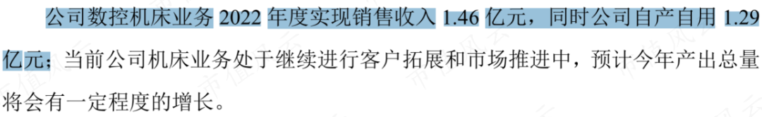 实际上在2022年公司已经向市场推出包括五轴加工中心、精密加工中心等数控机床系列化产品,当年实现收入1.5亿元,公司自产自用1.3亿元。