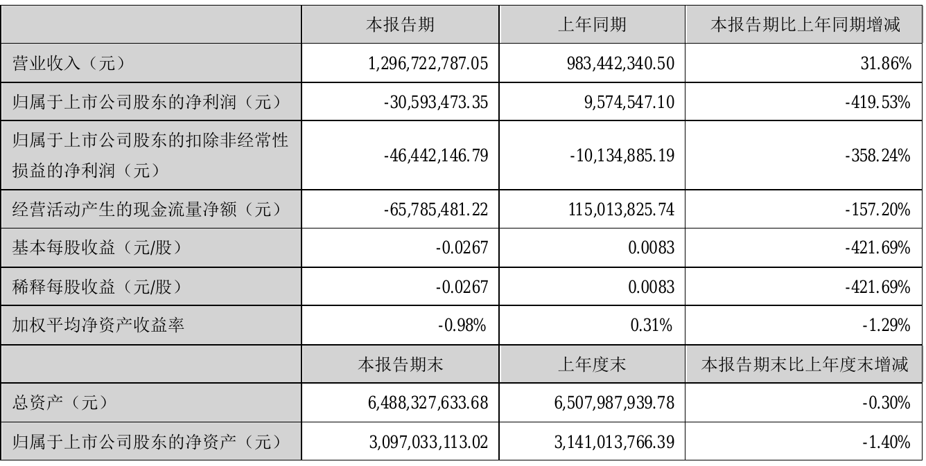 挖贝网8月26日,海南瑞泽(002596)近日发布2021年半年度报告,报告期内营业收入1,296,722,787.05元,同比增加31.86%;亏损30,593,473.35元,同比由盈转亏。
