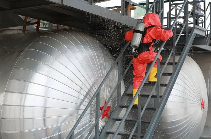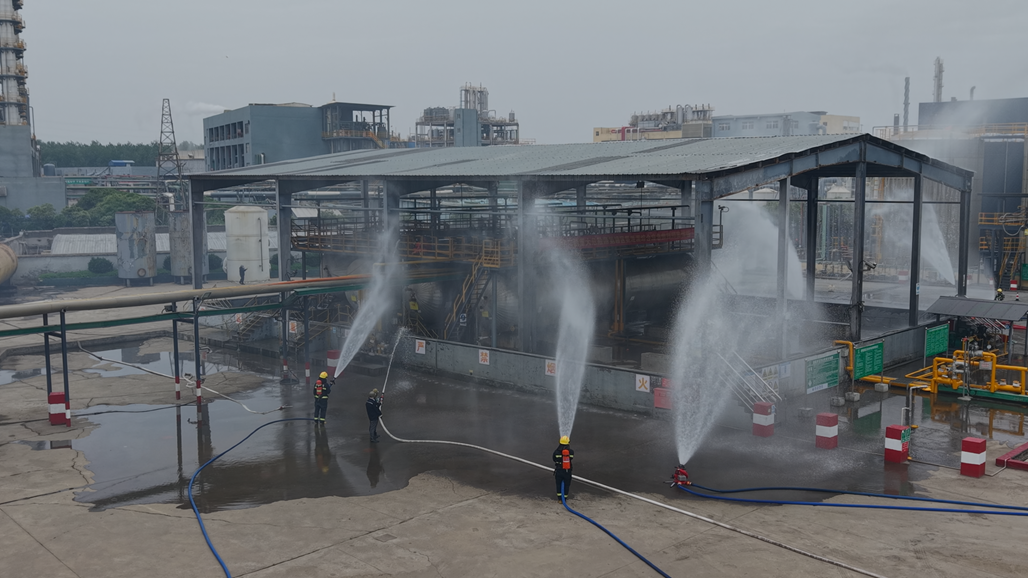 “报告调度,3#液氨储罐在定期检测过程中,突发氨管道泄漏,一名受限空间作业人员被困,情况紧急,请立即救援”……6月23日,氨罐区氨泄漏综合应急预案演练圆满完成。演练过程紧张有序、处置科学规范。全面检验了从事故报警、应急响应、人员施救、现场处置到后期恢复的全流程应对能力,进一步提升了各部门协同作战能力和应急处置水平。