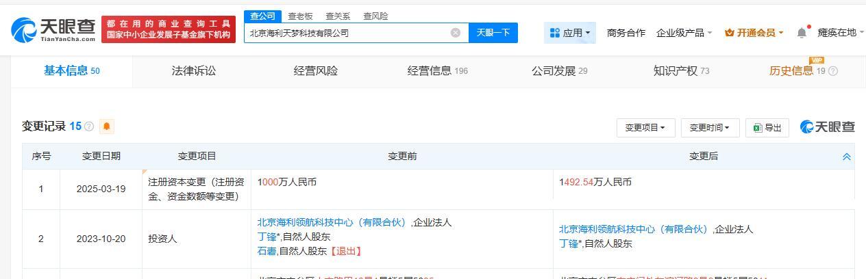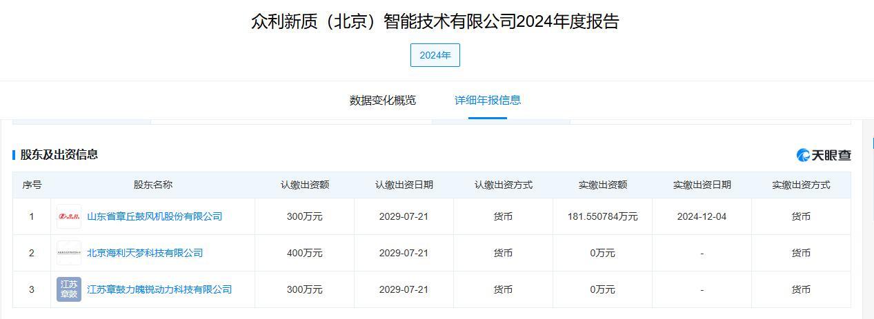 去年6月,山东章鼓披露投资北京海利天梦科技有限公司(以下简称“海利天梦”)一事,该公司主业为无人机。据公告,山东章鼓拟与子公司合计出资3000万元认购海利天梦538.46万元的注册资本。直到公告披露多时之后的2025年3月,海利天梦才进行注册资本的工商登记变更。据悉,山东章鼓目前没有派人员到该公司任职。