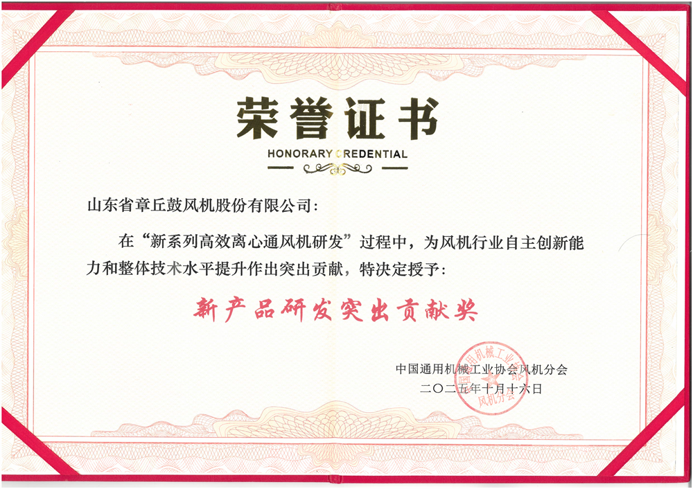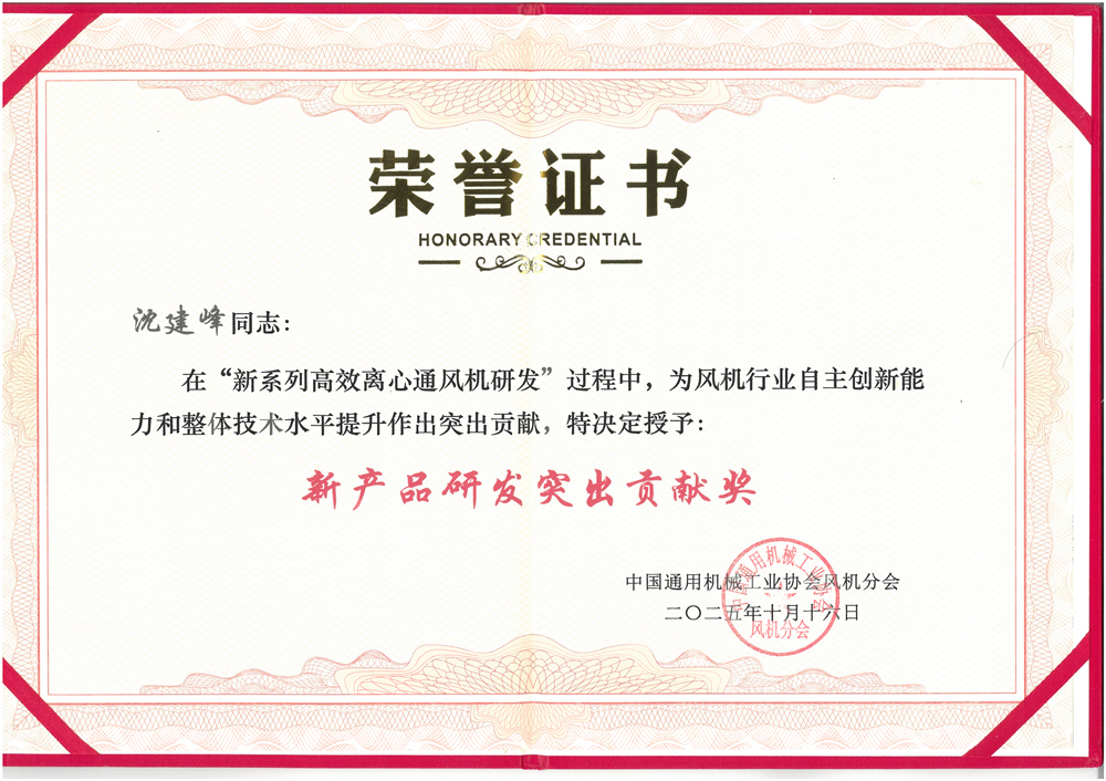 与此同时,公司通风机事业部研究所所长沈建峰同志,也因在研发过程中的突出表现,荣获个人“新产品研发突出贡献奖”。企业与个人双项殊荣的获得,是行业对山东章鼓技术创新实力与产业推动作用的权威认可与高度肯定。