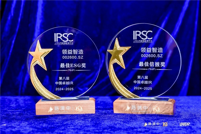 近日,在“路演中国”2025上市公司投资者关系创新峰会暨第八届中国卓越IR颁奖盛典上,领益智造荣膺“最佳信披奖”“最佳 ESG 奖”两项大奖,这同时也是领益智造四度蝉联“最佳 ESG 奖”。