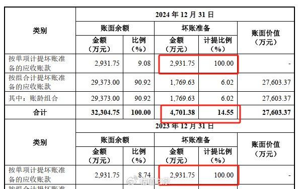 且就坏账准备计提比例分析,2024年标的公司1年以上的应收账款占比为13.43%,较2023年占比增长1.85个百分点的情况下,标的公司整体坏账准备的计提比例却是不升反降0.49个百分点。同时,估值之家也并未查见标的公司按账龄披露各年坏账准备具体的计提比例,其是否存在通过人为调节计提比例来粉饰其2024年经营业绩的情况仍然存疑。