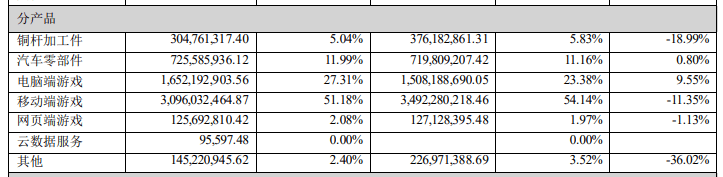其中,移动端游戏收入30.96亿元,为营收最高的产品。但上半年,移动端游戏收入同比下降11.35%,营收占比由54.14%降至51.18%。