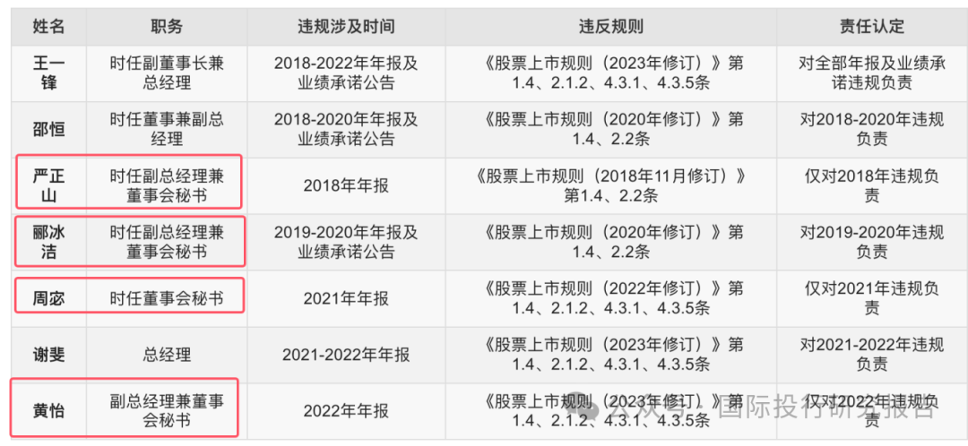 王一锋责任最重(覆盖2018-2022年全部违规)。