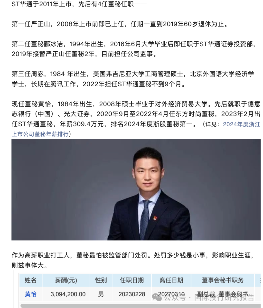 2 、这次警示包括公司上市14年以来连续4任董秘,其中1位还是2024年度浙股董秘薪酬第一。这在中国上市公司历史上可能是首次