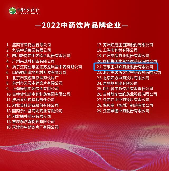 3月28日,由中国中药协会主办的第三届中国中药品牌建设大会在北京召开。本届大会围绕“品牌引领,传承创新,推动中药产业高质量发展”的主题,发布了8项2022年度中药行业品牌:按照板块分为中药材、中药饮片、中成药、传承创新四类。以岭药业荣登“2022中药饮片品牌企业”榜单。
