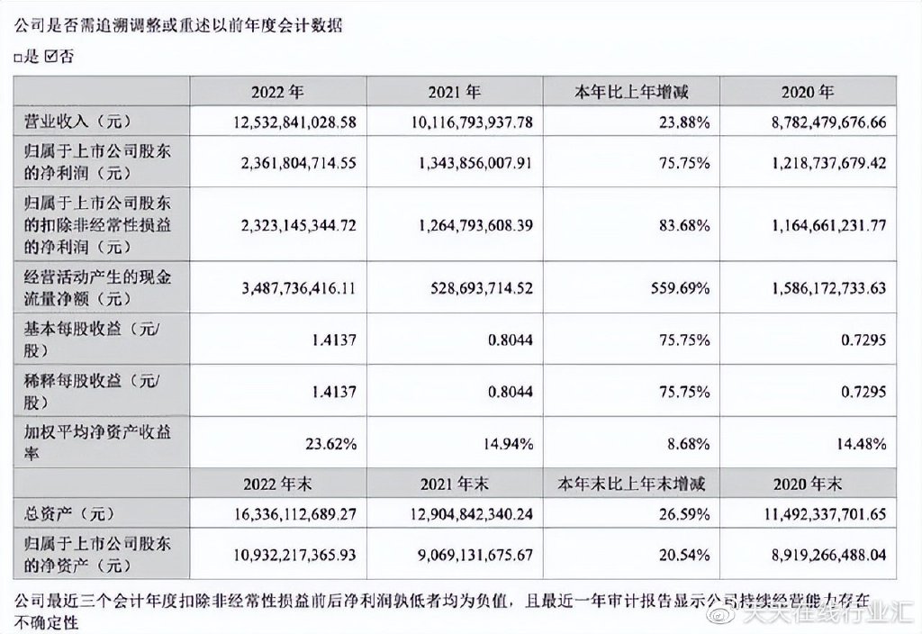 去年一年,该公司实现营收125.33亿元,同比增长23.88%;归母净利润23.62亿元,同比增长75.75%。