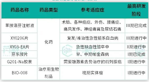 其中非甾体类镇痛药苯胺洛芬注射液进展最快,III期临床已完成,正筹备申报上市,有望成为新药品注册管理办法实施以来,以岭药业首个获批上市的1类化药新药。其次为XY0206片,这是以舒尼替尼为先导化合物,在其骨架结构基础上进行优化改造而得到的2-吲哚酮类多靶点RTK抑制剂。