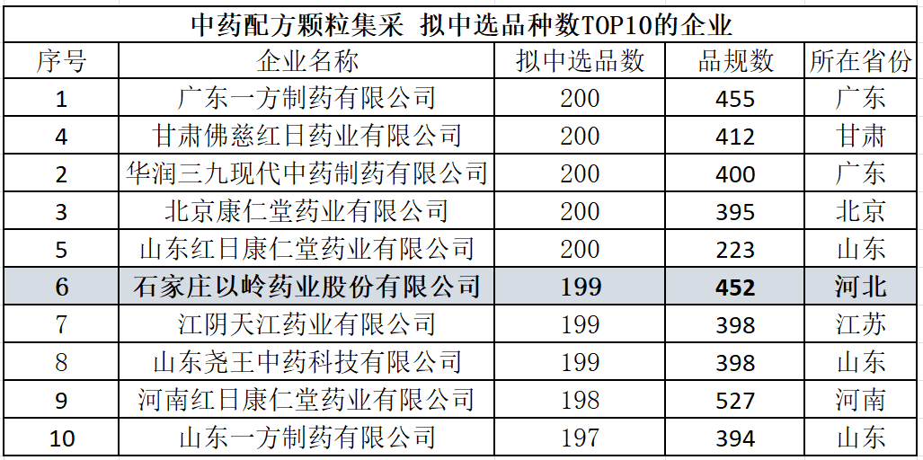 此次集采由山东省牵头,联合山西、内蒙古、辽宁、吉林、黑龙江、安徽、江西、海南、云南、西藏、陕西、青海、新疆、新疆生产建设兵团,共对200个国家标准中药配方颗粒产品进行集采,以岭药业申报了199个,全部拟中选。