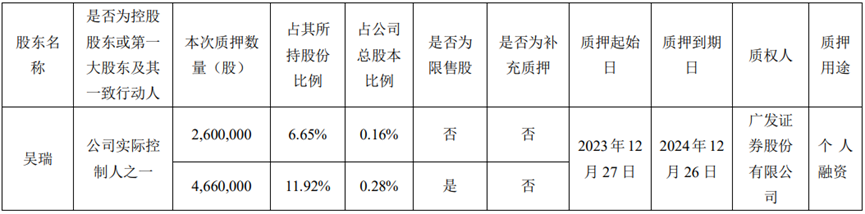 去年末及今年3月,公司实控人吴相君、吴瑞相继进行了股份质押。