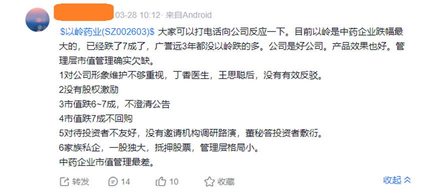 在这方面,有投资者细数了以岭药业的各种“摆烂”行径:
