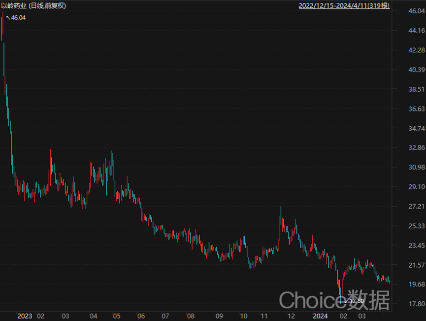图一:以岭药业2022年12月15日至2024年4月11日股价走势