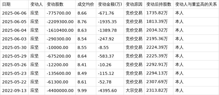 深交所公开信息显示,6月6日,大连电瓷董事应坚在竞价交易公司股票,减持股数77.57万股,成交均价8.66元,变动金额671.76万元,变动后持股数为1735.82万股。