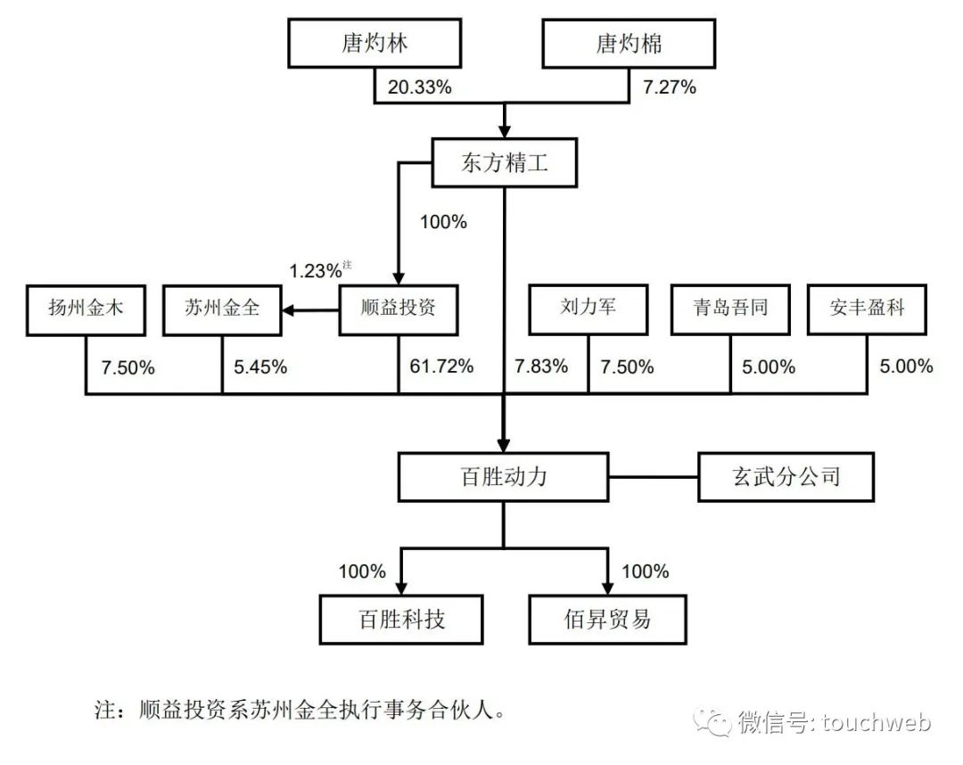 百胜动力的公司控股股东为顺益投资,间接控股股东为东方精工,实际控制人为唐灼林和唐灼棉。