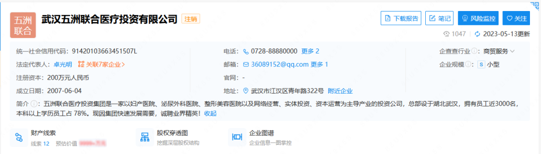 据企查查显示,韩辰集团是由武汉五洲联合医疗投资集团筹资创办的国际化医疗美容连锁医院集团公司,后者实控人是卓光明。目前,韩辰医疗美容连锁医院已拥有武汉、南京、昆明、西安等10多家大型医美医院。