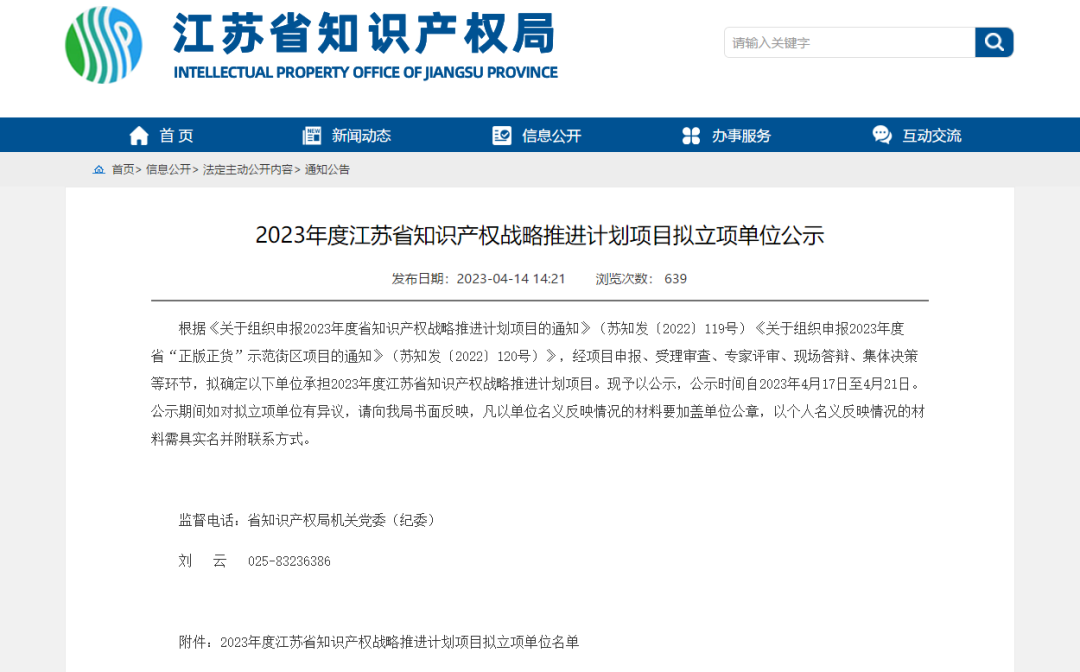 4月14日,江苏省知识产权局公布了2023年度江苏省知识产权战略推进计划项目拟立项单位名单。亚玛顿凭借高质量的知识产权创造、运用、保护和管理,成功入选该项目名单。