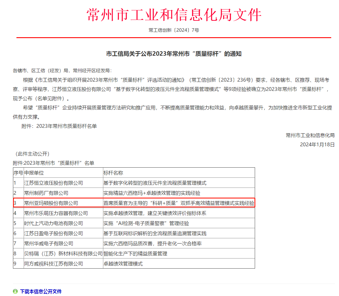 入选省质量标杆是对亚玛顿生产质量过硬的权威认可,亚玛顿打造“科研+质量”双引擎,在质量管理关键场景,产品全生命周期,已具有成熟应用的质量管理经验,达到了质量管理的先进水平,可供同行业借鉴运用。