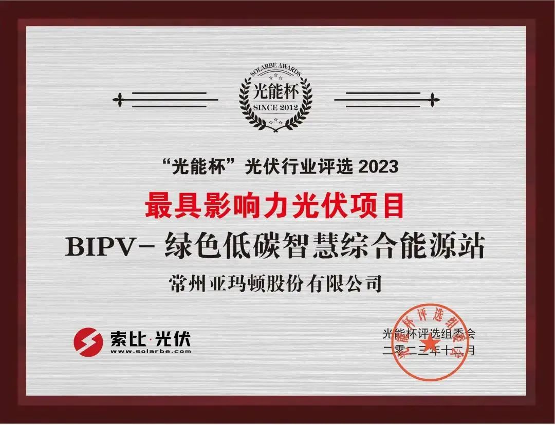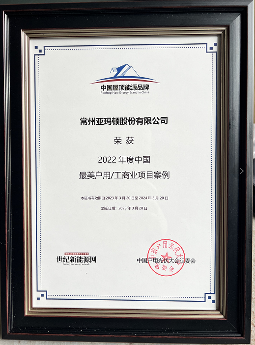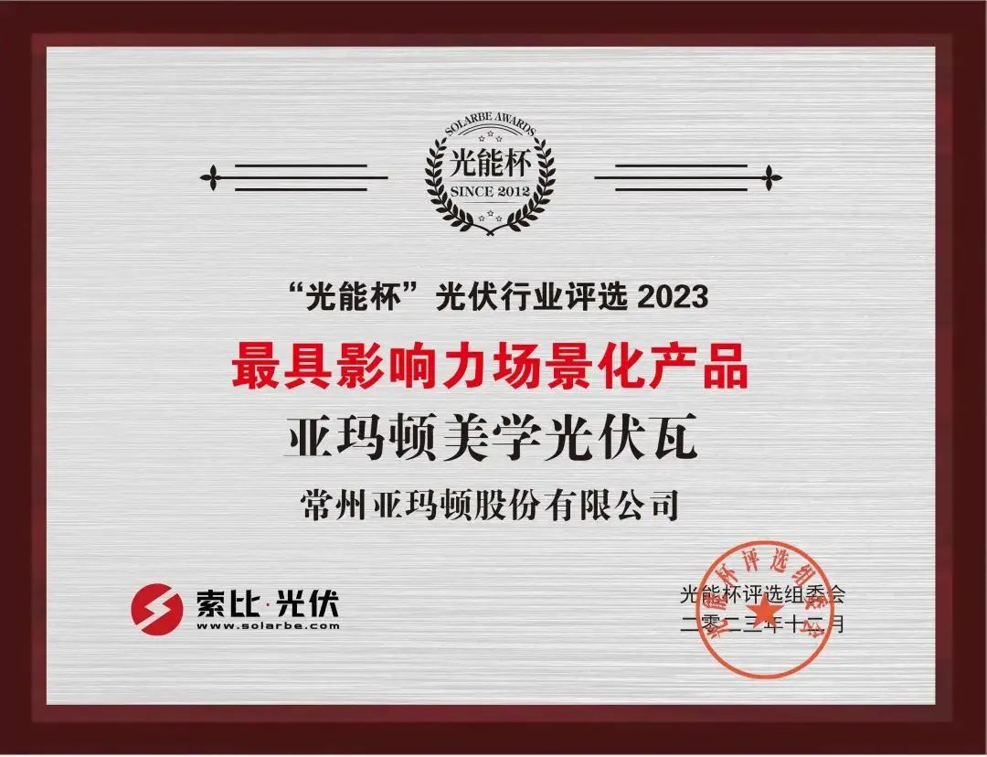 在2023第五届中国户用光伏大会暨分布式能源高质量发展论坛,亚玛顿荣获“2022年度中国最美户用/工商业项目案例”大奖。未来,亚玛顿将紧抓BIPV市场发展契机,不断研发探索产品新领域,提升自身核心竞争力。