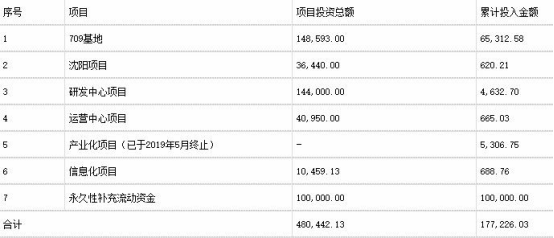 2019年4月12日及5月15日,公司分别通过会议决定终止了产业化项目,产业化项目终止后结余募集资金部分用于投资新设募投项目,部分用于永久补充流动资金,剩余未做变更部分21.63亿元。此次调整后,公司募集资金投资项目情况如下: