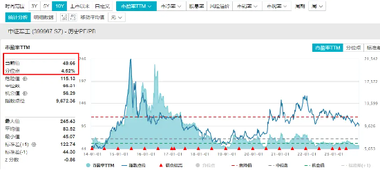 目前国防军工板块已处于估值底部区间,中长期配置性价比尤为突出。Wind数据显示,截至12月8日,中证军工指数最新PE估值为49.66倍,处于2014年以来4.52%分位点,即低于近10年逾95%时间区间!