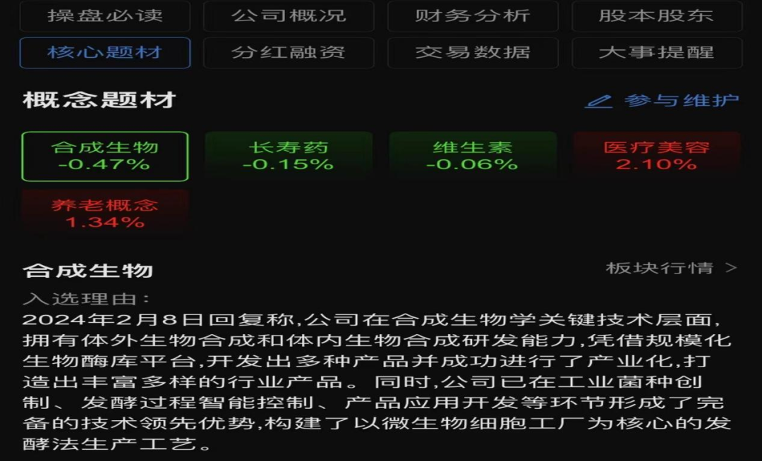 回顾公司的股价历史,似乎新兴概念的炒作比基本面业绩增长对股价的推动作用还要大,目前,公司手握多项性感题材,合成生物、长寿药、维生素、医疗美容、养老概念,公司是否能真正依托这些概念实现业绩增长呢?