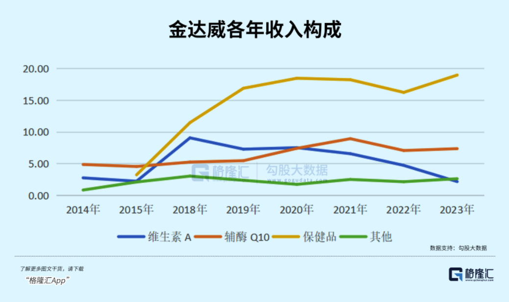 在维生素A、辅酶Q10的基础上,通过买买买模式逐渐拓展了保健品、医药原料业务。在切入保健品业务之前,金达威的拳头产品主要是维生素A、维生素D3、辅酶Q10,而且市场地位较高,属于全球较大辅酶Q10生产厂家之一,国内较大的辅酶Q10出口企业,全球前三大VD3生产厂家之一,全球六家VA生产厂家之一。