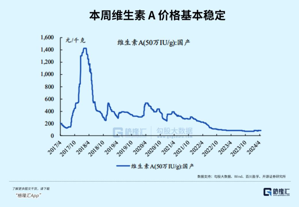 据悉,目前维生素A的全球开工率普遍较低,部分企业陷入亏损,存在一定的挺价意愿,但需要注意的是,花园生物计划增加6000吨的维生素A粉产能可能会加剧供需失衡,导致价格恢复周期较为漫长。
