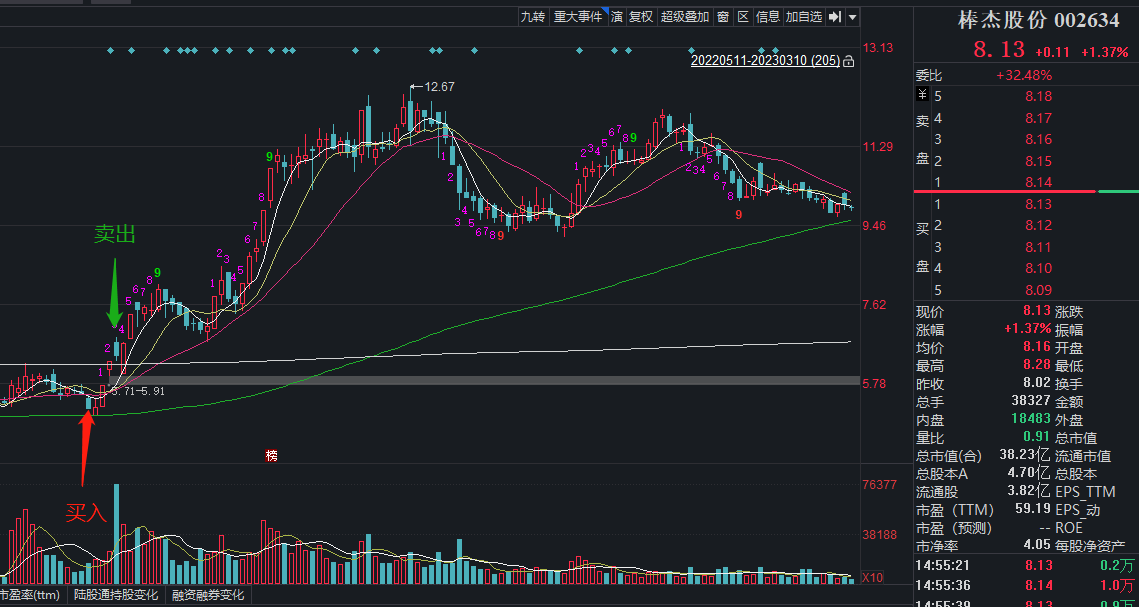 银柿财经注意到,2022年9月23日至2022年9月29日,期间共5个交易日,棒杰股份收获了两个涨停板,区间涨幅高达16.39%。值得一提的是,此前,陈剑嵩签订的协议中,股权转让价经各方协商确定为7.84元/股,而其“老鼠仓”购入棒杰股份股价仅为5.2元左右,二级市场股价远低于协议转让价。
