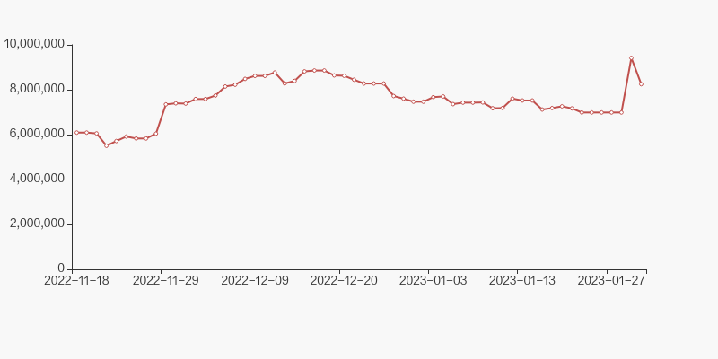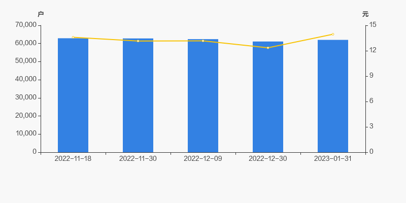 截至2023年1月31日,公司最新总股本为6.83亿股,其中流通股本为4.12亿股。户均持有流通股数量由上期的6734股下降至6640股,户均流通市值9.26万元。