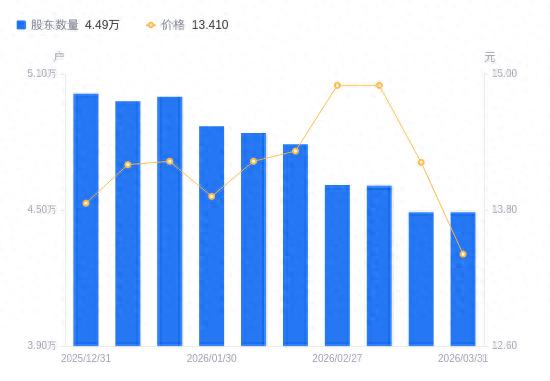 近一年(2025年3月31日至2026年3月31日),安洁科技A股股东户数从4.97万户,减低至4.49万户,降幅9.67%,区间股价下跌13.93%。