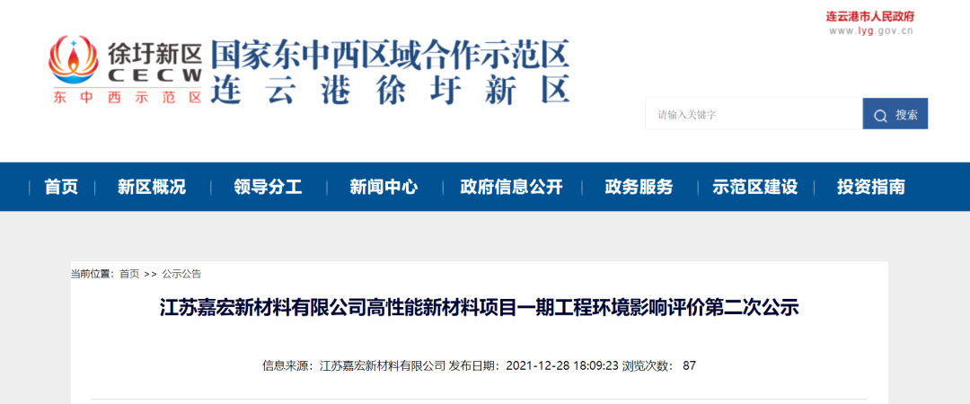 项目名称:江苏嘉宏新材料有限公司高性能新材料项目一期工程;