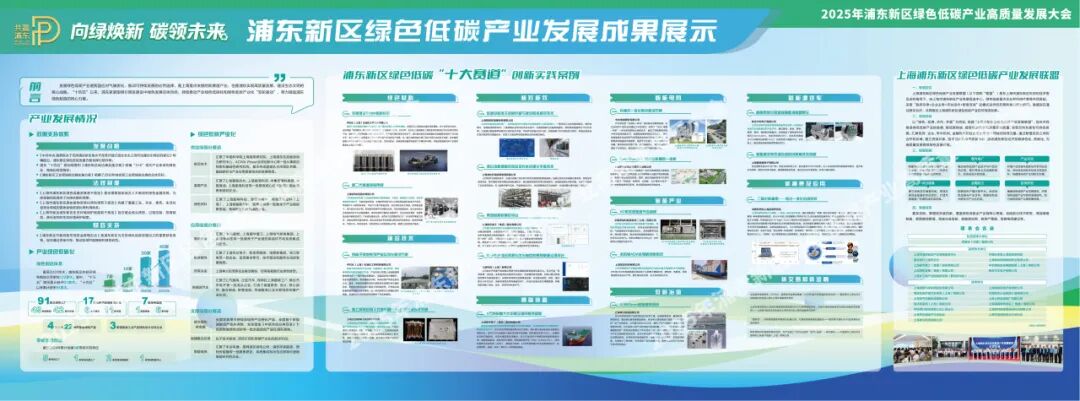 同期,现场设置浦东绿色低碳产业发展成果展示区,集中呈现“浦东新区绿色低碳十大赛道”创新实践案例,涵盖绿色材料、极致能效、智能电网、新能源汽车、氢能、低碳建筑、碳资产管理、蓝天保卫等方向,展示浦东在绿色低碳产业体系建设中的前沿探索。