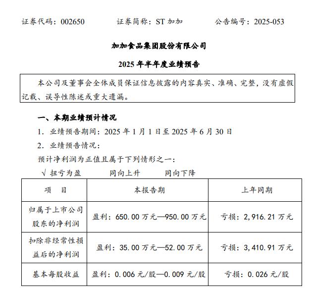 曾经的“酱油第一股”ST加加(002650.SZ),在经历了连续多年的亏损后,终于在2025年上半年迎来转机。