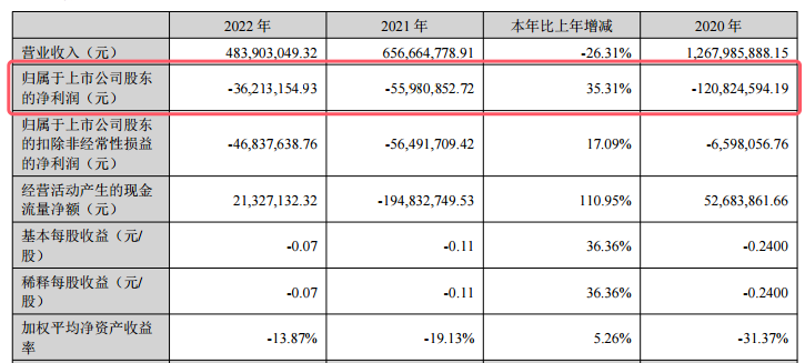 2020年至2022年,扬子新材归属于上市公司股东的净亏损分别为1.2亿元、5598万元、3621万元,三年累计亏损约2.1亿元。