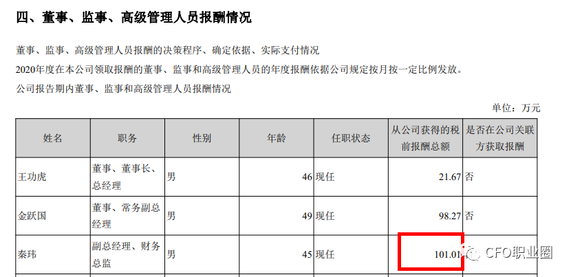 2021年秦玮获得的薪酬为101.01万元。