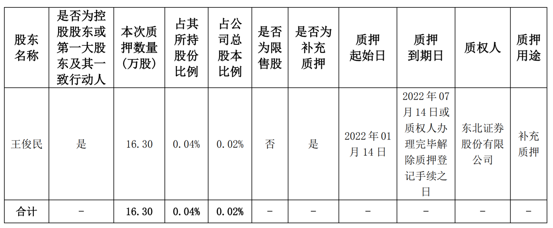 公告显示,海思科于近日接到控股股东及实际控制人之一王俊民的通知,获悉王俊民所持有海思科的16.3万股股份被质押,占海思科总股本比例为0.02%。