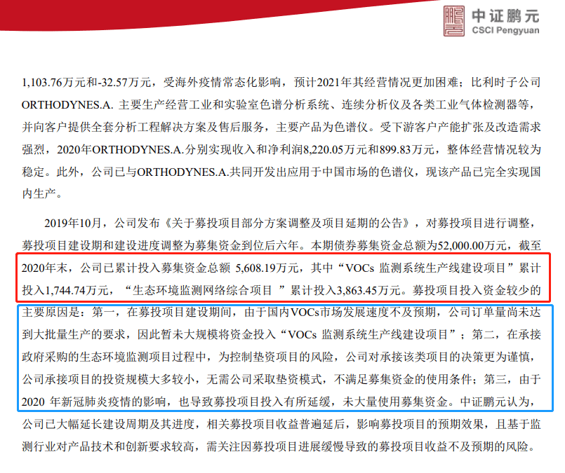 可后来的事实证明,当初上市公司和中介机构的可行性预判显然是过于乐观了,而对此,中证鹏元在2021年的评级报告中也明确指出,雪迪龙募投项目建设进度缓慢,影响募投项目的预期效果,且基于监测行业对产品技术和创新要求较高,需关注因募投项目进展缓慢导致的募投项目收益不及预期的风险。