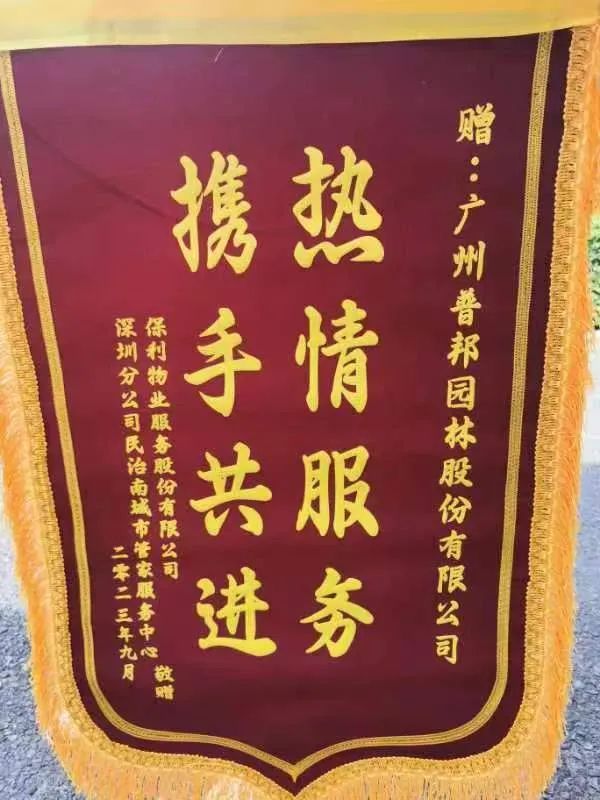 ·获保利物业服务股份有限公司深圳分公司民治南城市管家服务中心赠送“热情服务,携手共进”锦旗