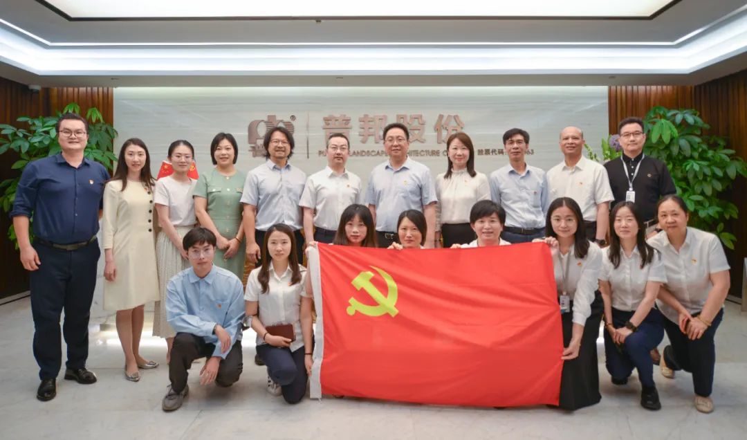为深入推进党建与业务融合发展,近日,广州城市更新集团有限公司(简称广州城更)党总支与广州普邦园林股份有限公司(简称普邦股份)党委联合开展“红联共建赋能发展”主题党日活动。广州城更党总支委员、副总经理吴宇,广州城更第三党支部书记蔡蓉,普邦股份党委书记、集团总裁杨国龙,普邦股份集团董事、规划设计事业部总裁叶劲枫,普邦股份党委副书记蔡鑫、熊静及双方党员代表共26人参与活动。