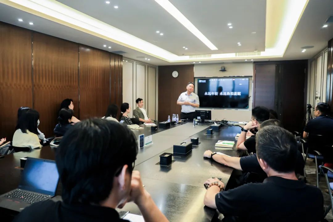 普邦股份党委书记、总裁杨国龙主持本次活动并作开场致辞。杨总提到,“创业需要认知思维的跃升、坚韧不拔的精神”,本次活动特邀成功创业者作面对面交流,希望能为大家在“选择创业方向、运用第一性原理寻找核心方向、应对艰难与挫折”等方面提供启发。