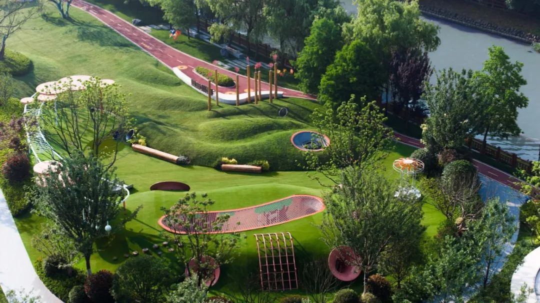 项目位于上海市闵行南部科创中心的核心区。通过尊重原生地貌环境、保留场地的原生植物,利用“竖向高差”的先天条件优势,结合边界消融手法,以滨水生态的高渗透性与流动性,为场地留出互动社交场域,打破城市与自然之间的围墙界限,力求打造由生态、文化、社交组成三元结构复合未来的生态人居城市公园。