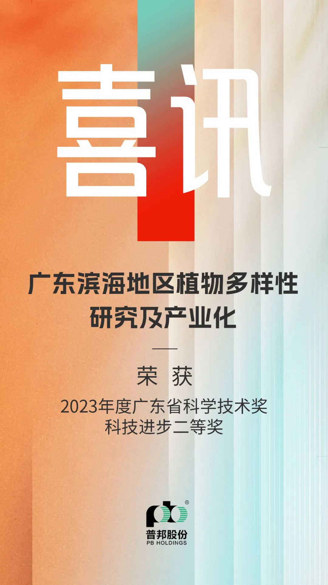 10月17日,广东省人民政府发布《广东省人民政府关于颁发2023年度广东省科学技术奖的通报》(粤府〔2024〕54号)。普邦股份作为第一完成单位申报的《广东滨海地区植物多样性研究及产业化》技术研发项目获得2023年度广东省科学技术奖科技进步二等奖。